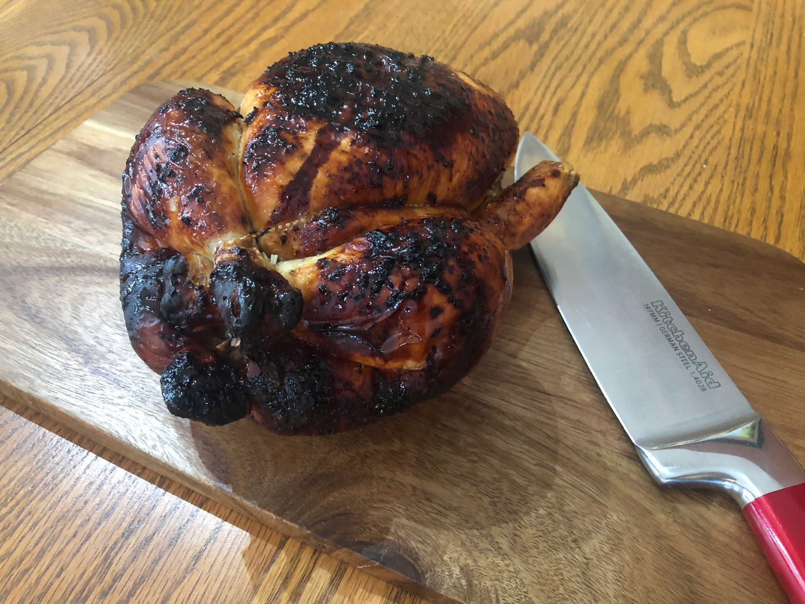 - 30 minutes before you are looking to cook your chicken take it out of the fridge and re-apply the saved sauce to the whole chicken.